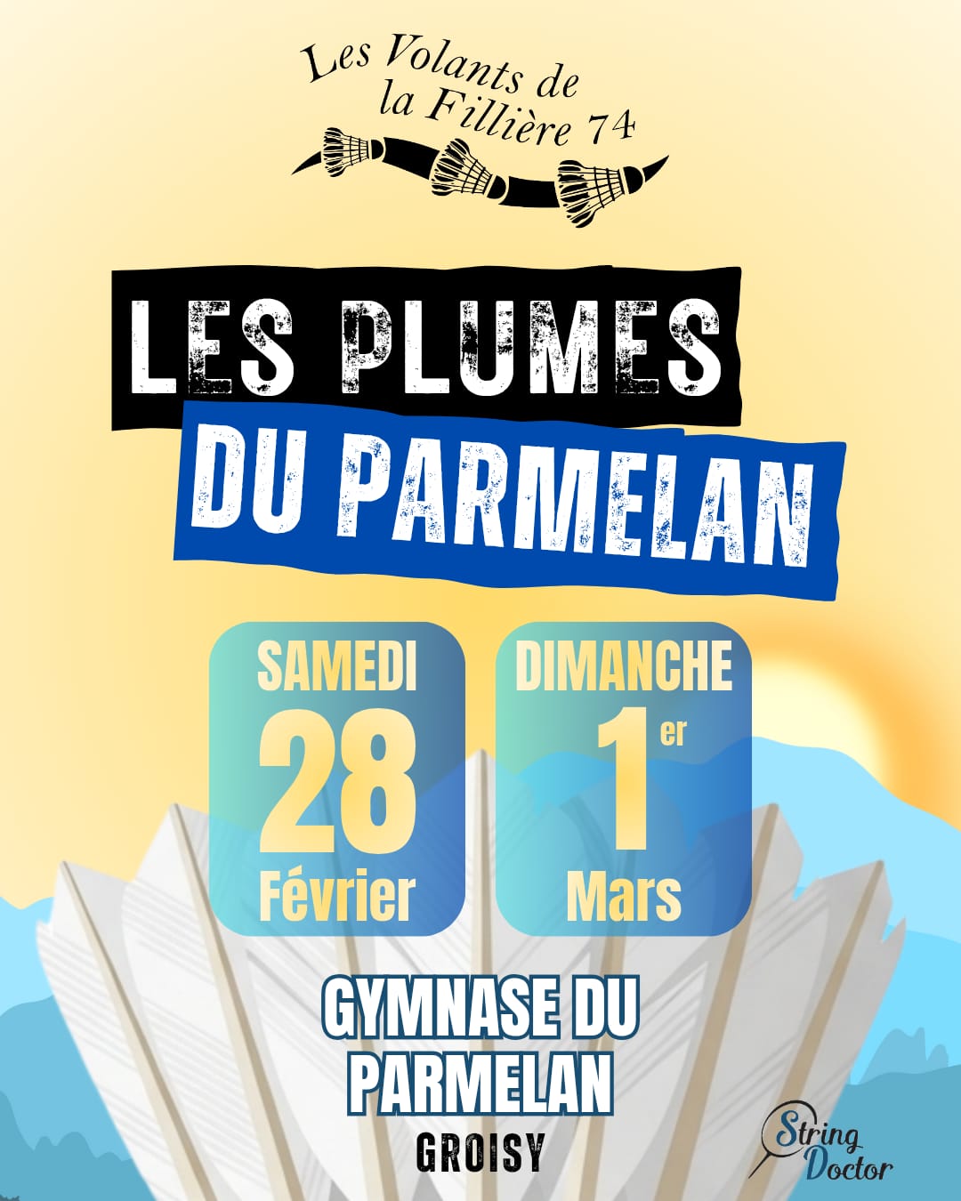 Le club Les Volants de la Fillière a le plaisir de vous inviter à la 13ème édition de son tournoi annuel les 28 février et 1er mars 2026 !